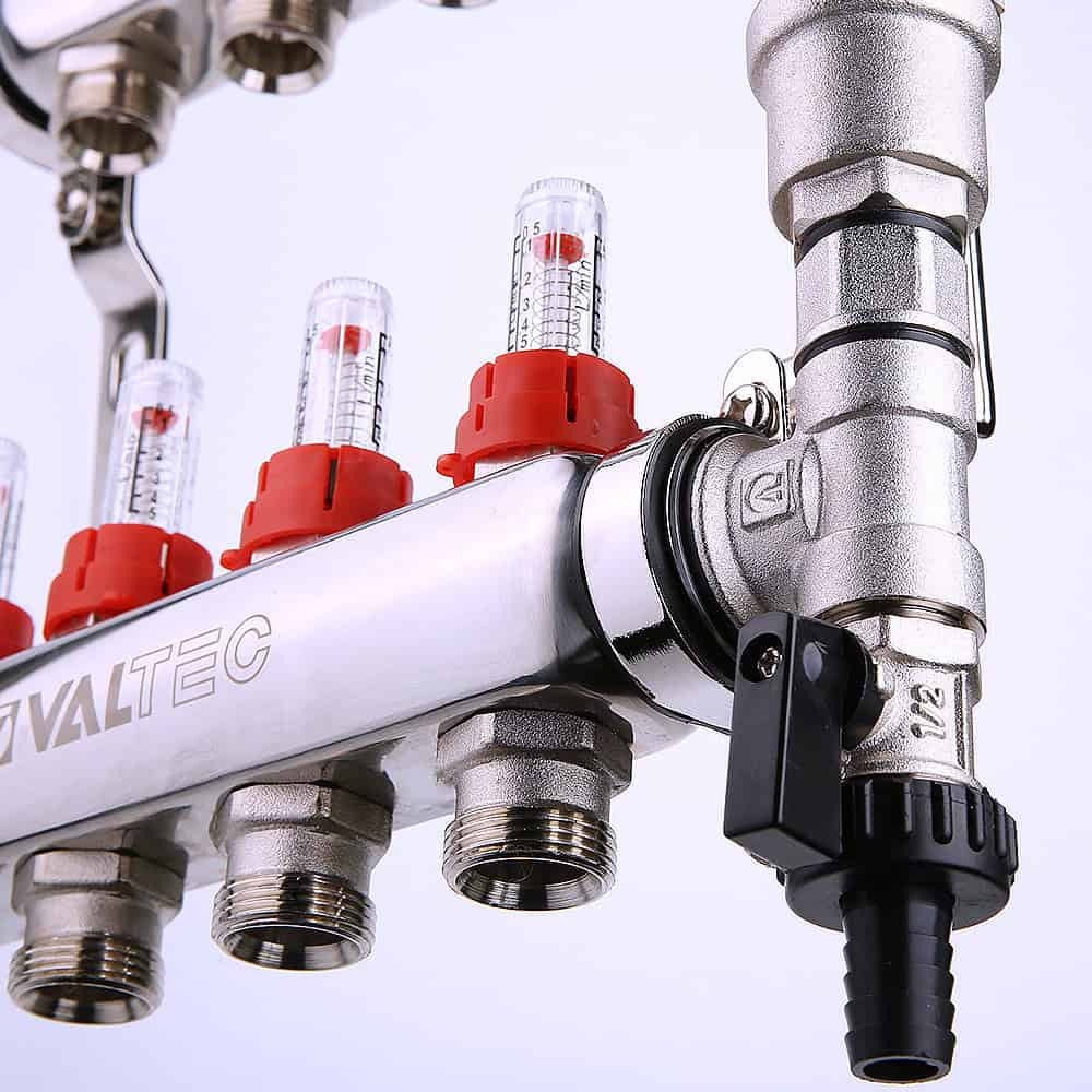 Материал коллекторов – сталь AISI 304, арматуры и фитингов – латунь CW617N, уплотнительных колец и золотниковых прокладок – EPDM 70Sh.