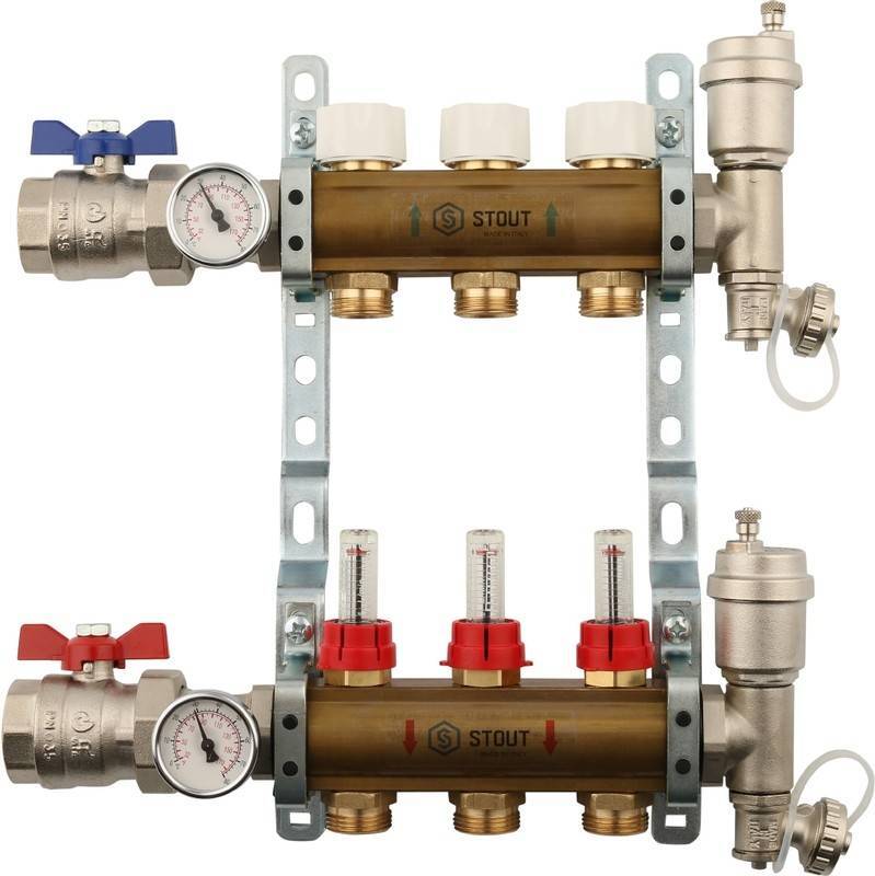 Коллектор распределительный Stout SMB 0473 000003 на 3 контура с расходомерами 1"/3/4"x3 УТ-00063243