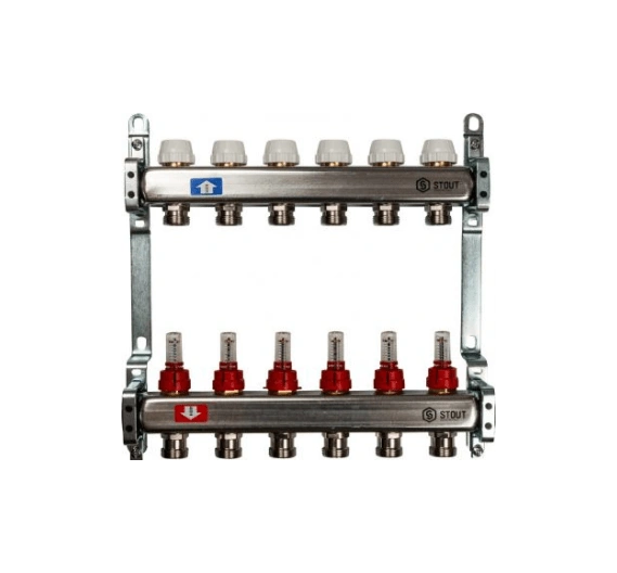 Коллектор Stout SMS-0917-000006 6 выходов, из нержавеющей стали, с расходомерами УТ-00016609
