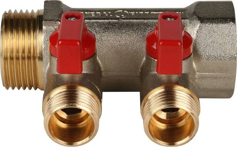 Коллектор с шаровыми кранами Stout SMB-6200-011202 на 2 выхода 1"/1/2"х2