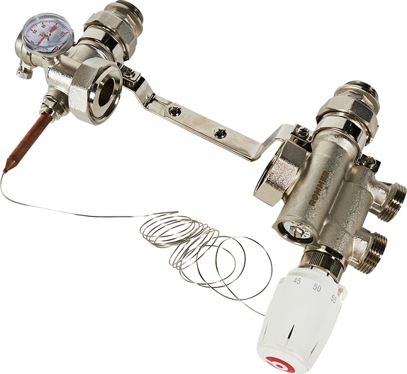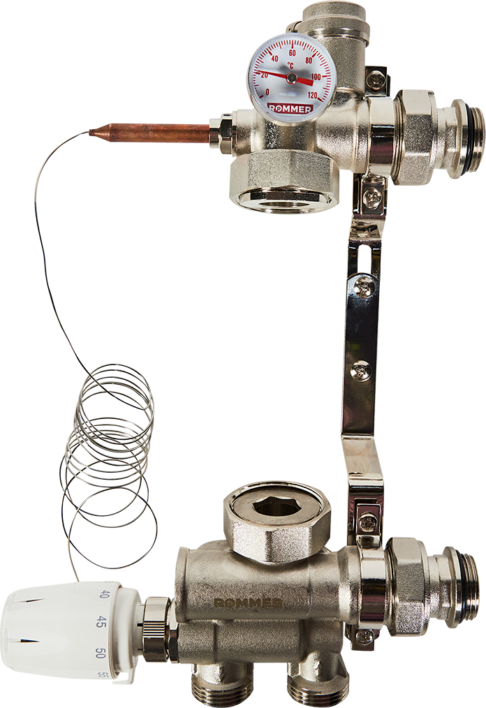 Насосно-смесительный узел Rommer RDG-0120-009000 с термостатической головкой с выносным датчиком, без насоса УТ-00185077