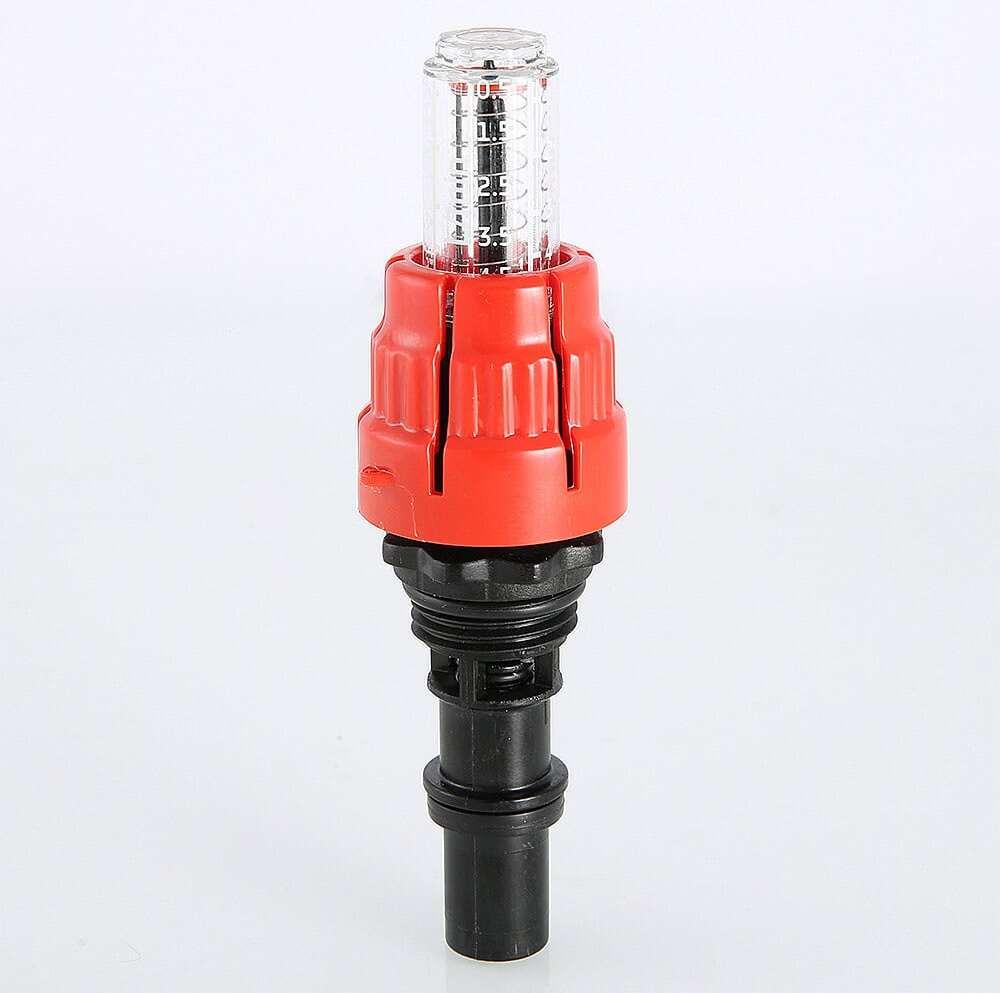 (VT.AC674) Пластиковый расходомер (ротаметр) для коллекторных блоков VTc.596, VTc.586. Предназначен для индикации и регулировки расхода теплоносителя в присоединенных контурах напольного или радиаторного отопления при наладке (гидравлической балансировке) системы. Шкала прозрачной колбы отградуирована в диапазоне расхода от 0,5 до 5,0 л/мин. Текущее значение расхода определяется по положению индикаторной шайбы. Расходомер можно разобрать и прочистить при загрязнении.