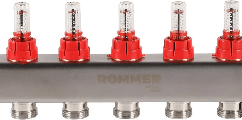 Коллектор Rommer RMS-1201-000006 6 выходов, с расходомерами, с воздухоотводчиком УТ-00171976
