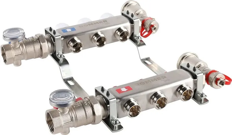 Коллектор для теплого пола ROMMER - ваш надежный помощник для улучшения производительности систем отопления в зданиях. С их помощью вы сможете обеспечить равномерное распределение теплоносителя по контурам, что повысит эффективность работы всей системы.