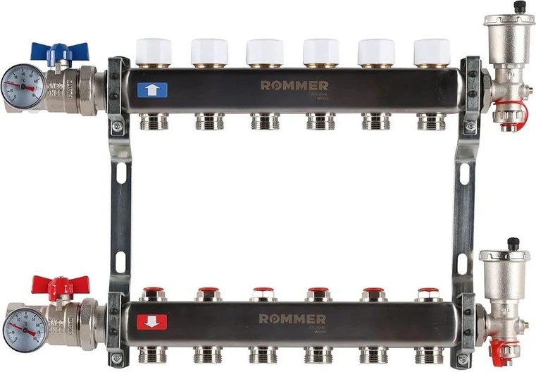 Использование коллекторов ROMMER позволяет контролировать все параметры системы и обеспечивает идеальный баланс. Вы сможете избежать лишних затрат и наслаждаться повышенным уровнем теплового комфорта. Доверьтесь надежности и многофункциональности  ROMMER, и вы будете рады результату!