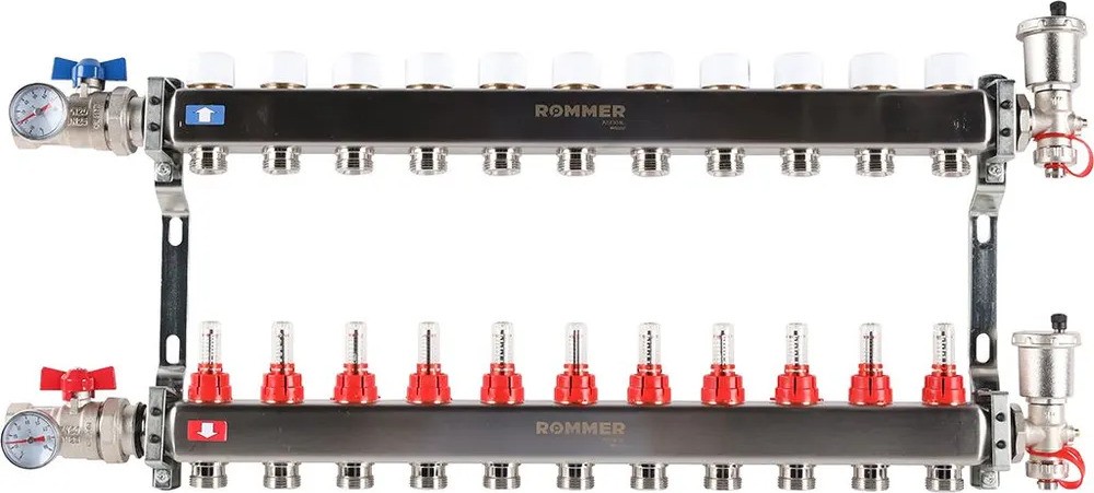 Коллектор для теплого пола ROMMER - ваш надежный помощник для улучшения производительности систем отопления в зданиях. С их помощью вы сможете обеспечить равномерное распределение теплоносителя по контурам, что повысит эффективность работы всей системы.