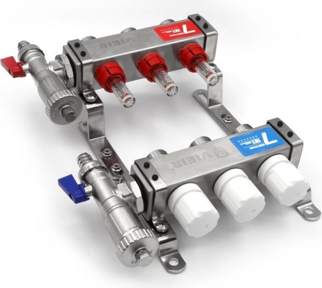Коллекторные группы ViEiR VR119-(02-12) предназначены для распределения и регулирования потоков теплоносителя в низкотемпературных системах отопления по потребителям. При этом под «потребителем» понимается отдельный нагревательный прибор или группа приборов, контур или петля «теплого пола», отдельные части или ветви системы.