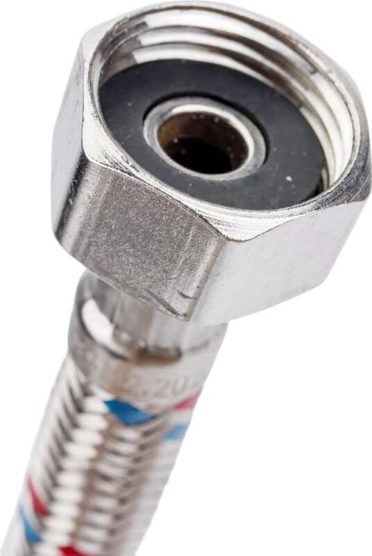 Подводки гибкие для воды VTf.002.IS рассчитаны на эксплуатацию при рабочем давлении 10 бар (максимальное давление – 20 бар) и температуре от 1 до 95 °C (максимальная температура – 100 °C). Внутренний диаметр шланга – 8,5 ± 0,5 мм. Закладной ниппель, накидная гайка, пресс-гильзы и оплетка подводок изготовлены из нержавеющей стали AISI 304. Использование ниппеля из нержавеющей стали позволило исключить излом этого элемента, повысить надежность всего изделия.