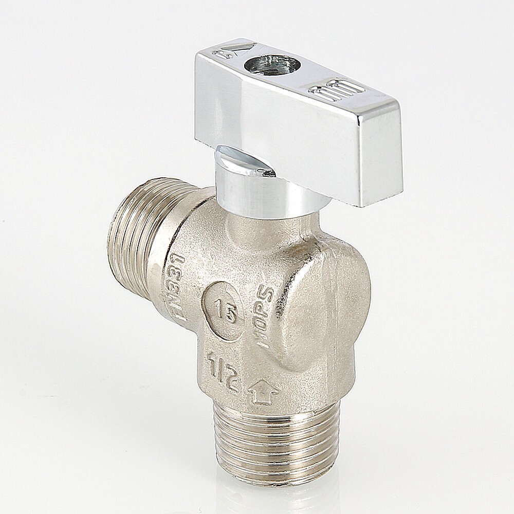 (S.041) Угловой шаровой кран S 041 (производитель – ENOLGAS Bonomi, Италия) предназначен для подключения к холодной или горячей водопроводной сети сантехнических приборов и других бытовых устройств. Он может использоваться также на трубопроводах сжатого воздуха, масел, жидкого углеводородного топлива. Кран выполнен из качественной сантехнической латуни, никелирован. Неремонтопригодный. Резьба присоединения к трубопроводу – наружная. Диапазон рабочих температур – от –20 до +90 °С. Номинальное давление – 16 бар.