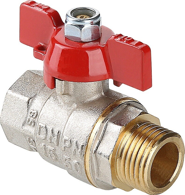 Шаровой кран S 218 оснащен ручкой «бабочка» из алюминиевого сплава. Резьба присоединений – внутренняя/наружная.