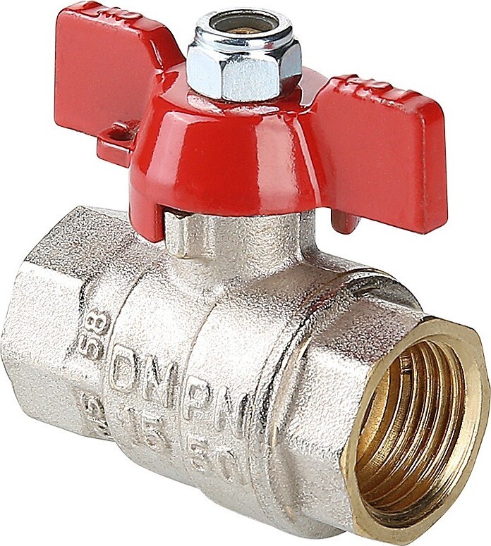 Шаровой кран S 217 оснащен ручкой «бабочка» из алюминиевого сплава. Резьба присоединений – внутренняя/внутренняя.
