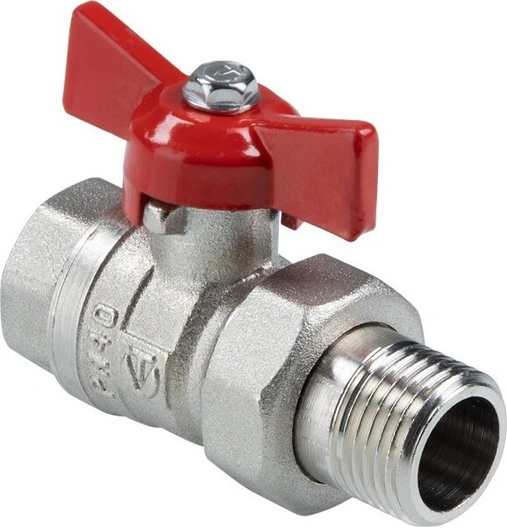 Шаровой кран VT.127.N оснащен силуминовой ручкой-бабочкой с эпоксидной эмалевой окраской. Соединен накидной гайкой с резьбовым полусгоном. Допустимая температура рабочей среды для данного крана – от +1 до +110 °С.