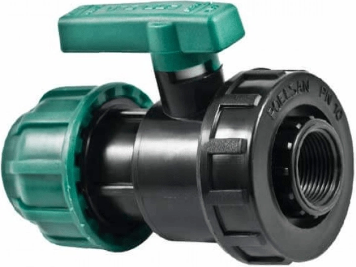 Кран шаровый разъемный с внутренней резьбой компрессионного типа предназначен для регулирования потока воды в трубопроводных системах (трубы ПНД, PE-RT и другие) питьевого и технического водоснабжения жилых и общественных зданий, в системах орошения и полива, при строительстве фонтанов и бассейнов. Кран шаровый разъемный компрессионный имеет с одной стороны внутреннюю стандартную метрическую резьбу, а с другой стороны цанговый зажим, что позволяет использовать его как переходной элемент трубопровода без применения компрессионных переходников. Кран может использоваться совместно с другими фитингами как пластиковыми, так и из других материалов. Материал крана - полипропилен