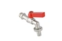 Латунный никелированный кран, применяемый в качестве запорной арматуры на трубопроводах систем водоснабжения (в том числе питьевого) с рабочей температурой до 75 °С при номинальном давлении 16 бар. Наличие съемного штуцера с накидной гайкой дает возможность производить его замену в зависимости от диаметра и материала применяемого шланга. Рассекатель обеспечивает формирование компактной струи на изливе. Кран оснащен алюминиевой рукояткой флажкового типа. Резьба присоединения – наружная. Неремонтопригодный. Средний полный ресурс – 8 тыс. циклов.
