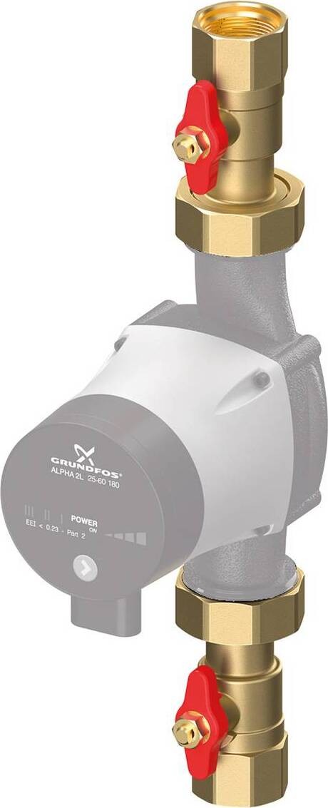 2 шаровых крана насоса (напорная сторона со встроенным предохранителем обратного потока) и воздушный затвор с двумя накидными гайками и уплотнениями.
