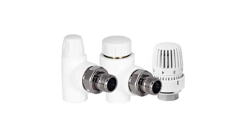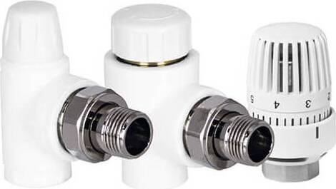 Комплект 3 для подключения радиатора 25х3/4" (Термоклапан угловой с колпачком, клапан запорный угловой, термоголовка) TEBO.